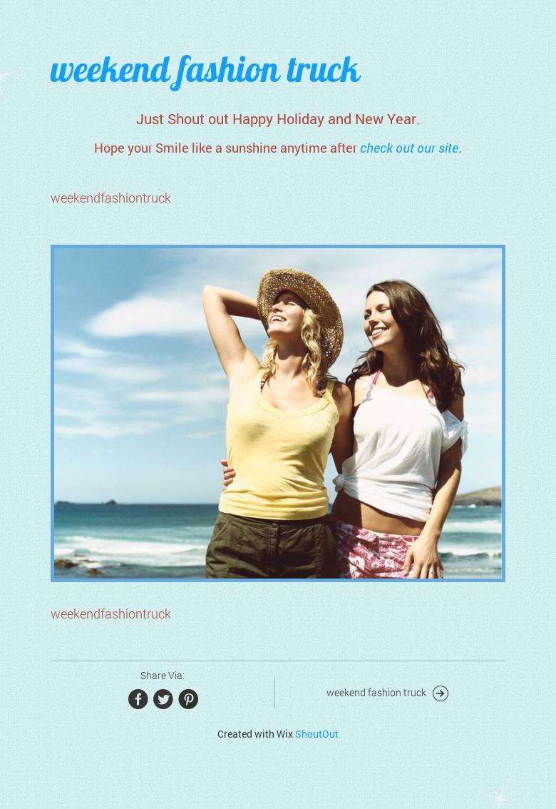 "Weekend fashion truck"` spain88.......Just shout out Happy Holiday and New Year